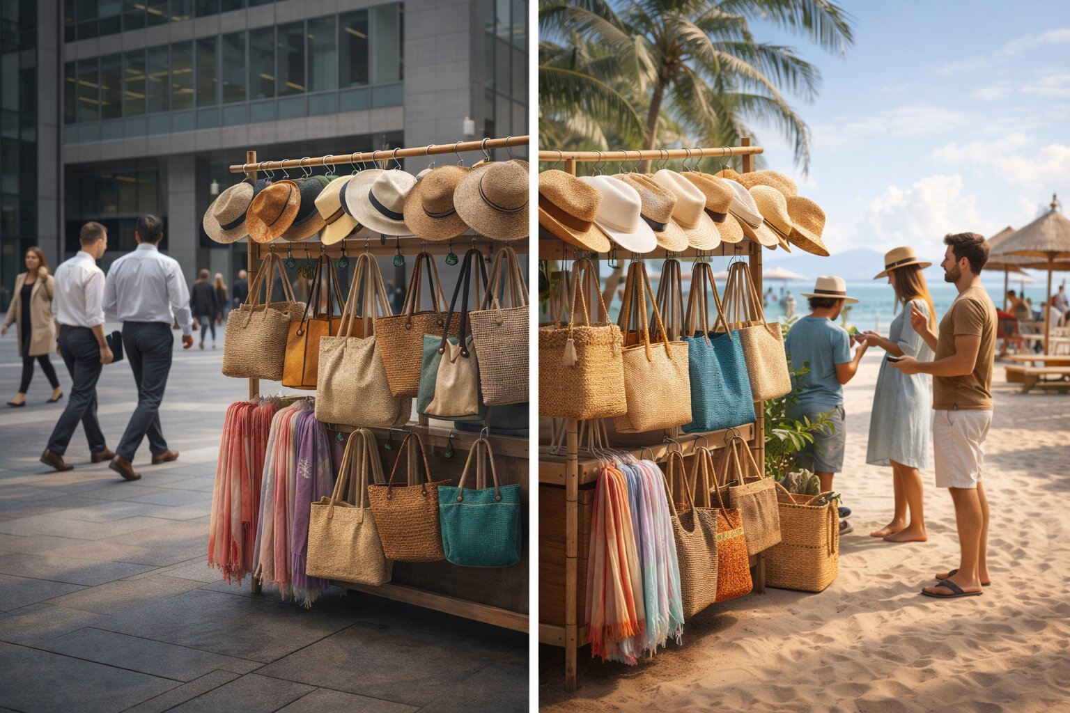 Imagina que vendes sombreros, pareos y bolsos de playa, pero tu puesto está en un lugar donde la mayoría de la gente trabaja en oficinas, casi no sale a la costa y no tiene ese producto en mente. Puede que muchos miren por curiosidad, puede que algunos hasta digan “qué bonito”, pero eso no significa que te vayan a comprar. En cambio, ese mismo puesto cerca de una zona playera, un área turística o frente a personas que sí viven ese contexto tendría muchas más probabilidades de vender. El producto no cambió, lo que cambió fue el contexto y la demanda.